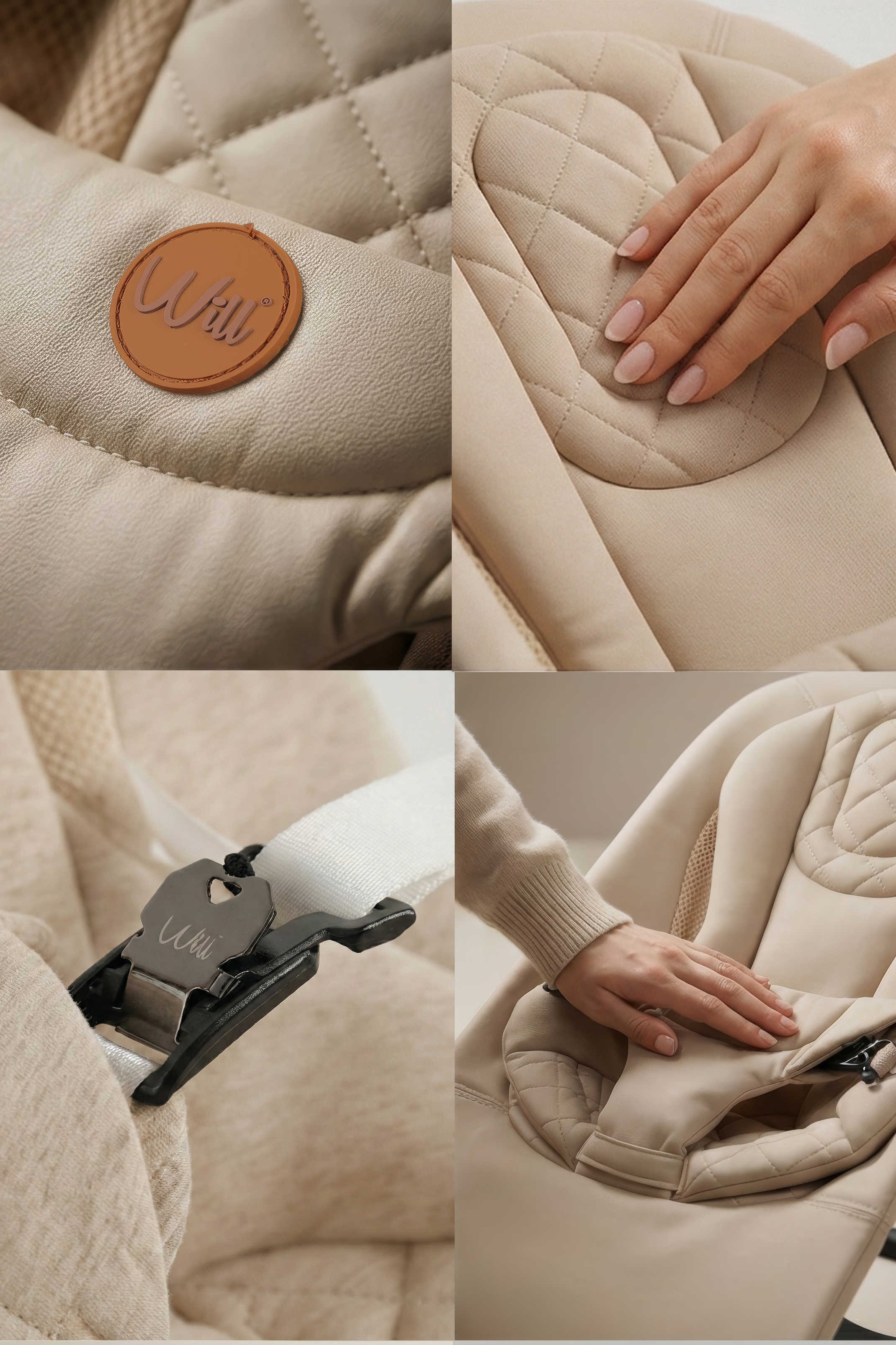 A natural resting place for your baby. The Will Baby Bouncer offers ergonomic support and a gentle, self-powered rocking motion. Designed with a secure magnetic buckle and durable fabrics, it brings quiet comfort to your everyday routine.