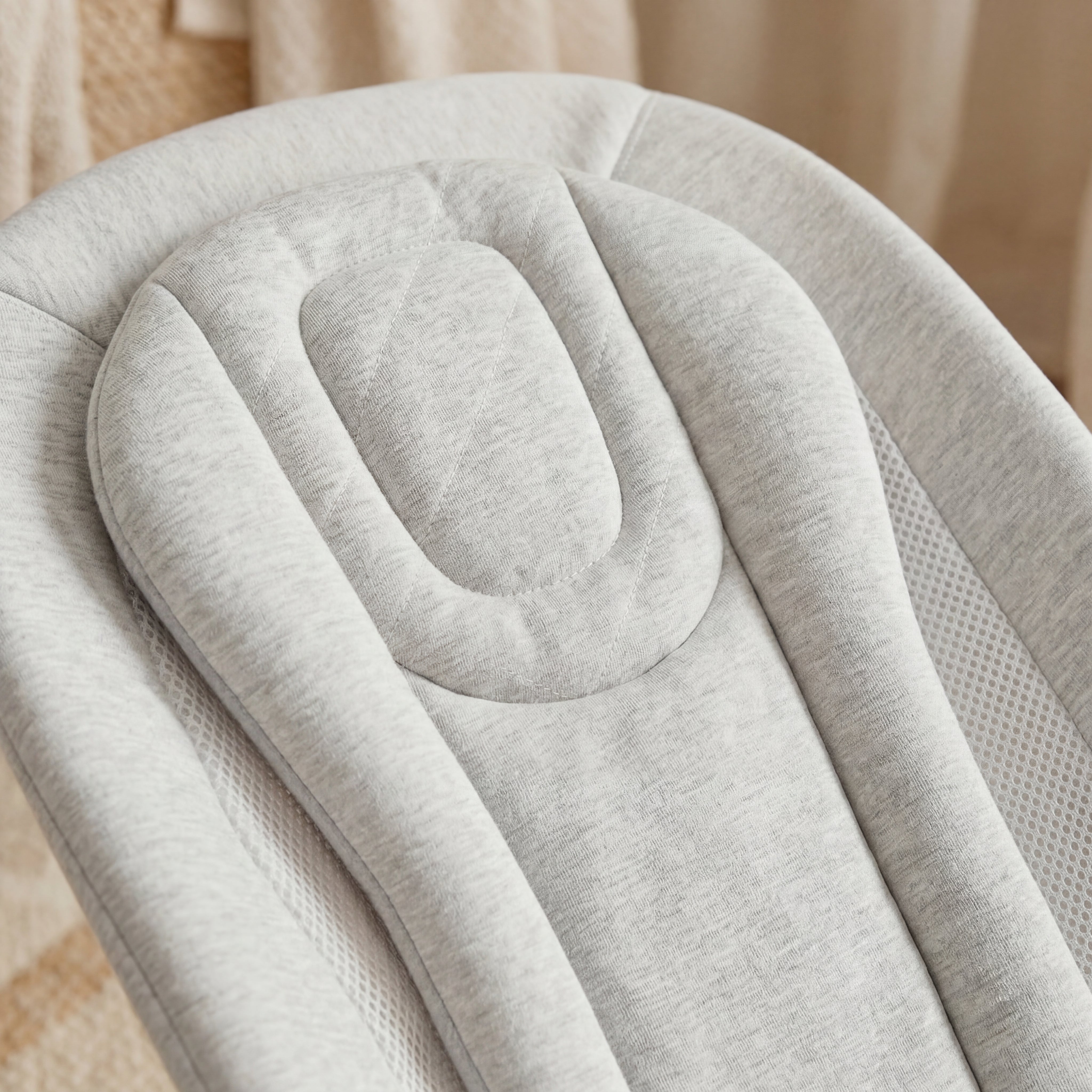 Designed for the earliest days, the included newborn insert provides essential head and back support. Made from the same soft-knit cotton blend as the main cover, it offers a gentle, snug environment that adapts to your baby’s growth. It ensures a healthy, ergonomic posture from birth up until 9 kg, making the bouncer a reliable companion for your baby’s development.